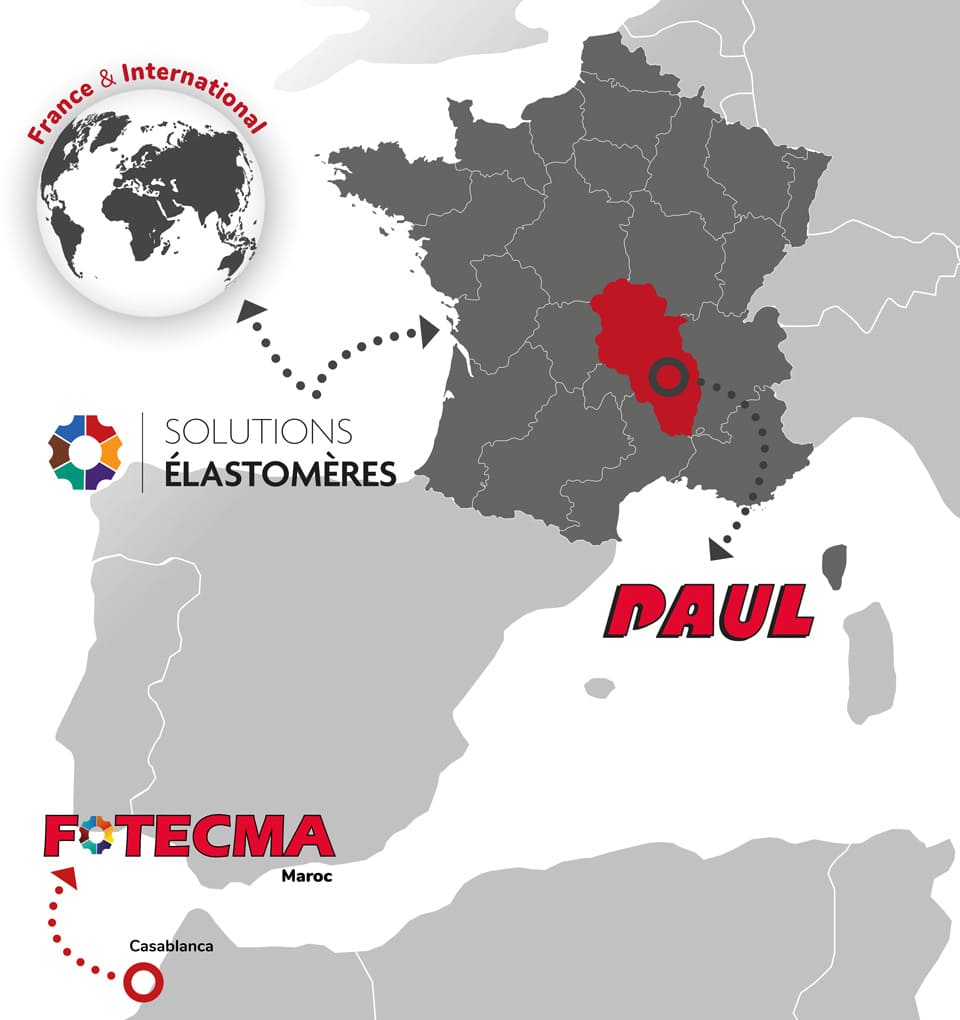 Situé dans le département de la Loire (42) à Saint-Étienne, le Groupe PAUL se compose de trois entités complémentaires : Paul, Fotecma et Solutions Élastomères.