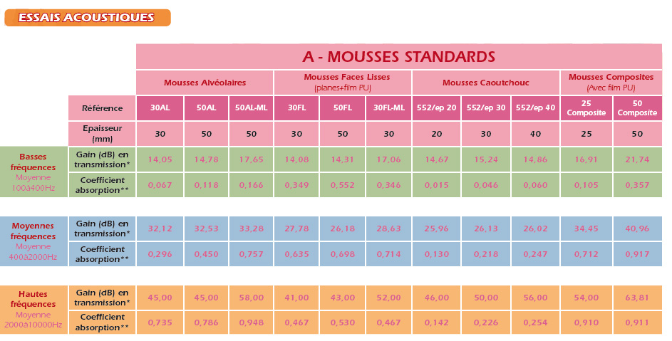 *Gain Moyen mesuré (plaque métallique épaisseur 1mm + mousse)